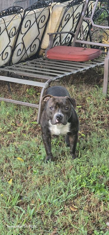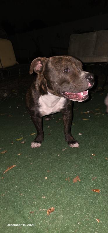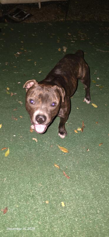 1 year Staffordshire Bull Terrier. Looking for a forever home.