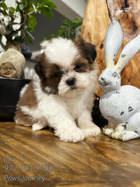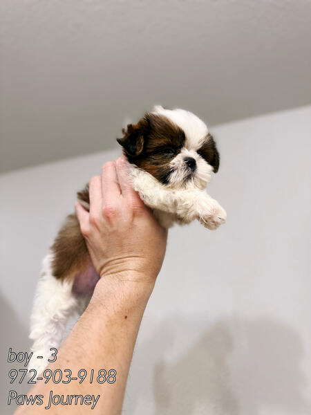 message pawsjourney about this ad 3 Male AKC SHIH TZU *AVAILABLE* DOB: Feb. 9, 2025 Mom and Dad weighs 6 - 7lbs 3 shots of vaccine given starting from 6 weeks then every 2 weeks Deworming performed since 2 week old and performed every 2 weeks Pet price is - $1999 each With breeding rights - $2500 each Location: WAXAHACHIE, Texas 972-903-9188 NEGOTIABLE Facebook : Instagram: @PawsJourneyLLC |