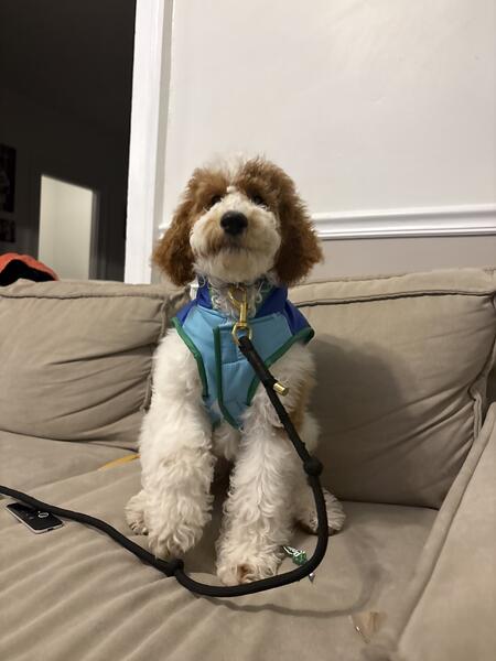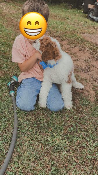 message gendedu about this ad Mackenzie is a handsome 16-week old Goldendoodle puppy. He is healthy up to date on all shots wont need any for another year! gentle with anyone he meets he adores kids and loves to be in everyones bubble. Hes crate trained and potty trained with a bell! he has a playful but calm personality for his age and wants nothing but to give love. He will come with everything needed including crate leash and harnesses toys and blankets his food too transition him vet records and basically everything thats his too make sure he has a smooth transition to his new home PRICE IS NEGOTIABLE |