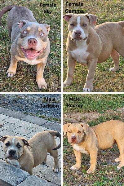 message empirebullycamp about this ad We have 2 males and 2 female American Bullies Looking for their furever homes. We have a spooky season deal right now, so dont miss out. All pups are house and crate trained. They have also been socialized with other animals as well as young children. Some basic training has been done as well. Their pedigree speaks for itself as it is stacked with some of the top bloodlines in the bully world. if you would like any more information please send us a message pups are 16 weeks |