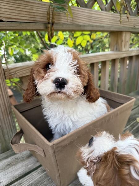 message ludmila25 about this ad A new addition to our Pet Family, Hazel(Mom) and Benji(Dad) welcomed their litter of F1 Cavapoo puppies on 8/03/2025 Hazel is registered with AKC and CKC. Benji is AKC and CKC registered. Hazel(Mom) is a miniature poodle(13lb) with the Golden Brown and white color, Benji (Dad) is a Cavalier King Charles Spaniel, (30lb) with a white and Gold color coat. The puppies will have their current vaccinations and deworming, theywill be given a clean bill of health by their vet. Let me know if youre interested in pictures or Video/ Live Chat. |
