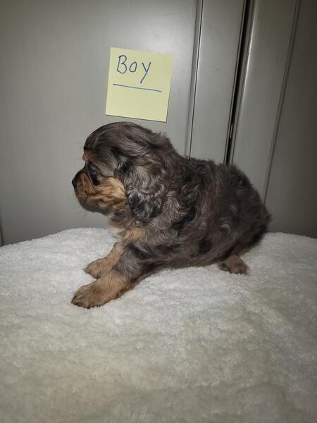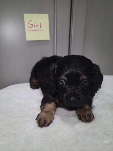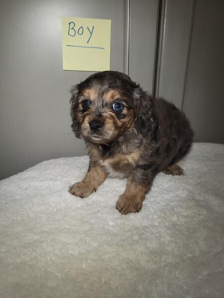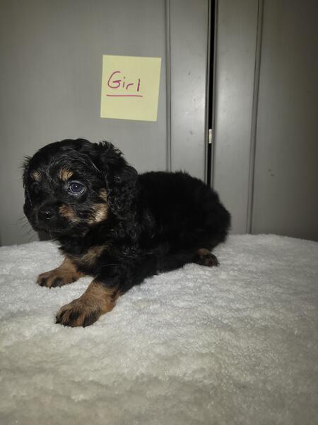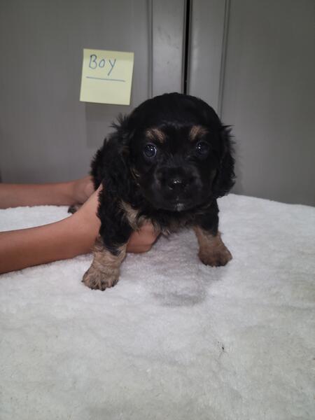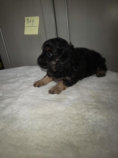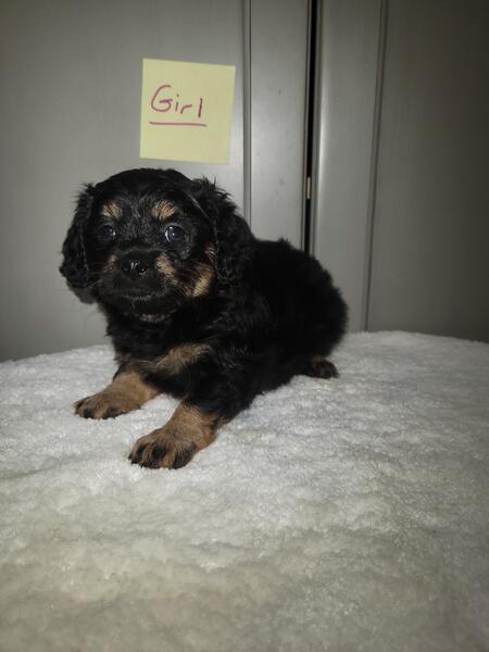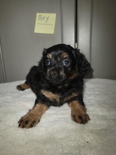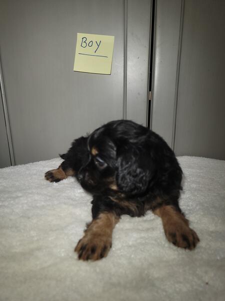 message fivetees about this ad Born 8/16/25. Mini Cavapoo puppies. Dad is a toy poodle. He weighs 9 lbs. Mom is a Cavalier King Charles Spaniel. She weighs 10 lbs. I have 2 black and tan tri males, 2 black and tan tri females. I'm asking $900 for each pup.They will be dewormed, first set of shots and vet checked. Call or text 260.310.9345 |