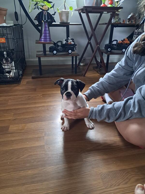 message kjones1gma2003 about this ad I have 1 akc Boston terrier male puppy left looking for his forever home. He is 7.5 weeks old, he has his first puppy shot and has been dewormed. For more info or to come meet his please call 810-841-2547. |