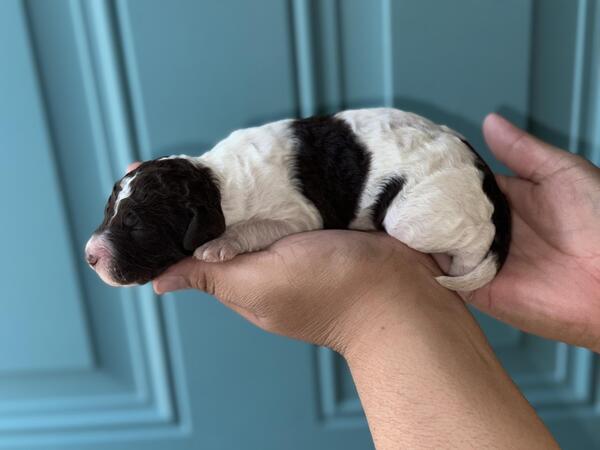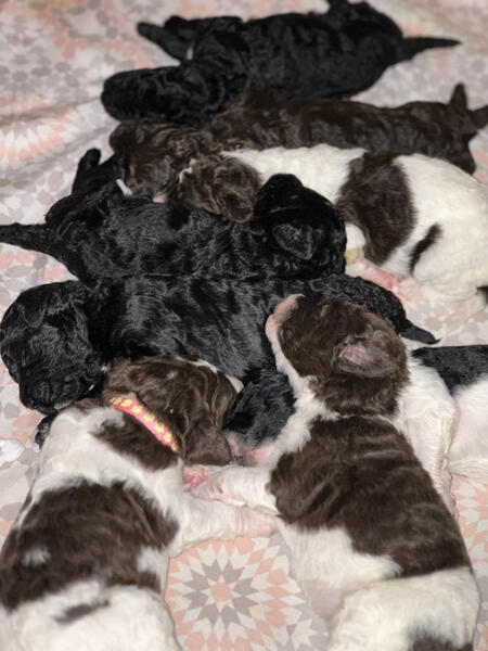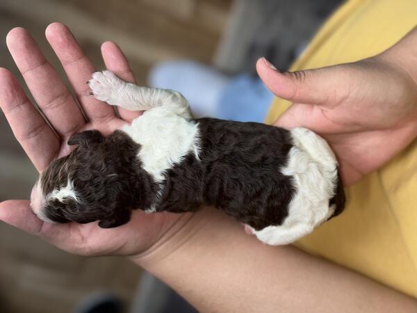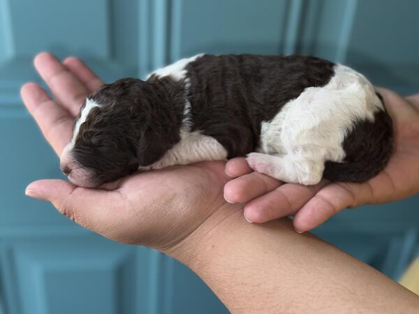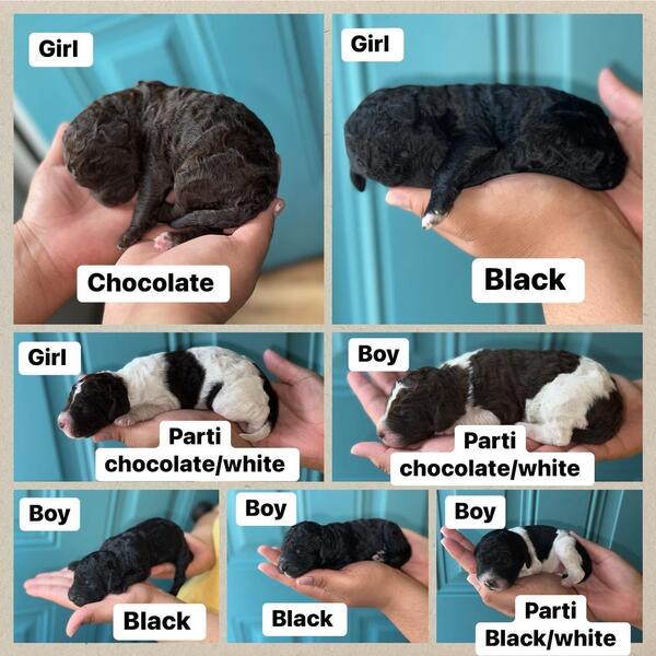 message mariaramirez25 about this ad F1BB Goldendoodle puppies were birthed 05/07/24 we have various colors, including 3Black ,1chocolate, and 4 Parti these precious pups will be ready to go to their Furever home in july. the weight of these pups as adults will range from 45 to 60lbs. We are taking deposits to secure a pup of your liking. Contact for more info |