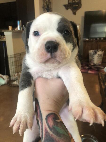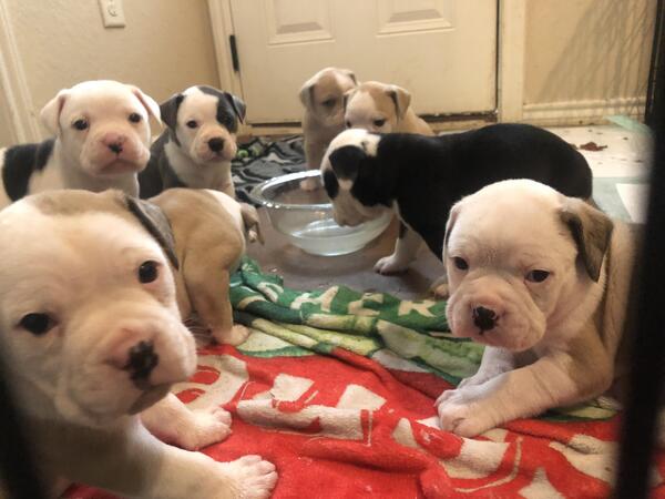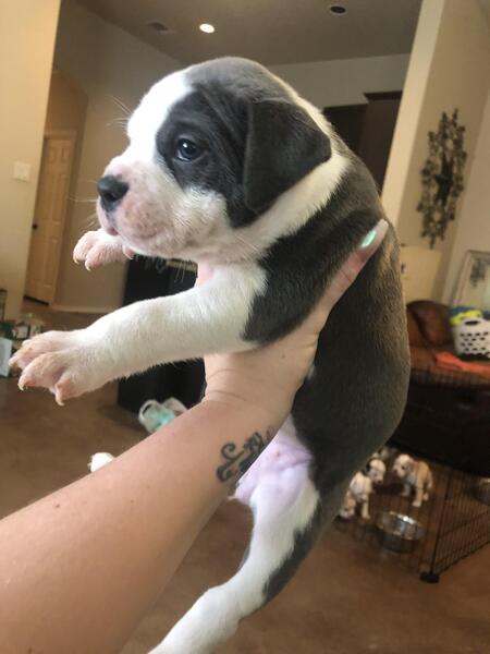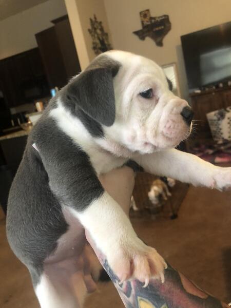 message wisdom86 about this ad We have 8 beautiful males and 1 gorgeous female pup available. Both mom and dad are registered Olde English Bulldogges through I.O.E.B.A (International Olde English Bulldogge Association) They will be dewormed & also have had their tails docked. They were born 12/27 & They will be ready to leave 2/14. Just in time for Valentines Day! |