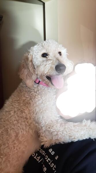 message goldendoodles777 about this ad Hello! My name is Pinky and I was born on 10/11/22! I am SUPER SUPER smart and love to cuddle! I was attuned to my hoo-mans before all my sister and brothers. My pack is great but I love hoo-mans more! I would make a wonderful companion because I am super loyal. I have the prettiest face and the biggest eyes of all my siblings. I love krinkly sound toys and can shake paw. I know what "no" means so if you say it, I stop right away. I am good in a kennel at night. But I also love to sleep with my hoo-man when it is my turn. I am so funny when I get the zoomies. And sometimes I jump around like a bunny rabbit and make my hoo-man laugh. I love "rubber bellies" and "shake-a-paw My hoo-man can tell you lots more! I was the first pick of the litter, and my mama held me for a therapist lady who had a car wreck and never was able to go back to work so she didnt need a therapy dog. |