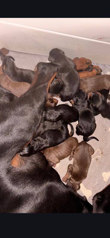 message gsdmama2 about this ad Puppies will come with akc registration, cropped ears, docked tails, dews claws removed, 2 rounds of shots, microchip, utd on dewormings, vet exam before leaving. 3 black females, 3 black males, 3 red males, 1 red female available. Go home date is roughly March 5th. Located in Piedmont, SC will meet/ deliver nationwide. We have puppies all over the world and have references available. Contact 864-804-4772 |