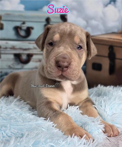 message blueaxel about this ad We currently have 3 females and 1 male great dane puppies available. They just turned 4 wks ans will be ready to head home the end of August. They are all 8 and 9lbs each doing great. Lovable and bouncy babies. If interested in any, send me text or call and let me know which you are interested in. We are in Eastern Ky but have affordable transportation if needed. Give me a yell anytime and I can send extra pics, videos and we can even live chat to see the babies in action. Thanks and we hope to add you to the Family soon. Have a Blessed Day! Blue Axel Danes . com 859-361-4781 |