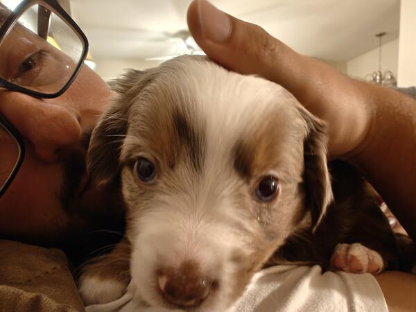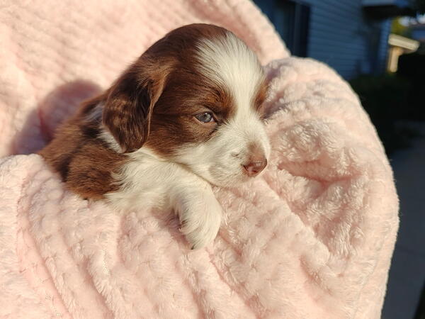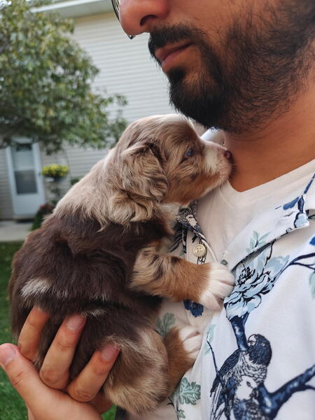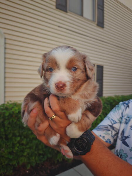 message romosuryoyo about this ad We decided to just once breed our Mini Aussie Azul so we could spread her precious perfection into the world. We are looking for responsible owners with the time and finances to care for a puppy. There are two left that aren't spoken for a female Brown Tri, and a Red Myrtle boy. They both have peaceful and sweet personalities. We will let each one go they're ready for their forever homes and very adorable. Currently 5 weeks old. We are in the northwest suburbs of Chicago. |