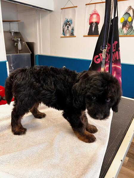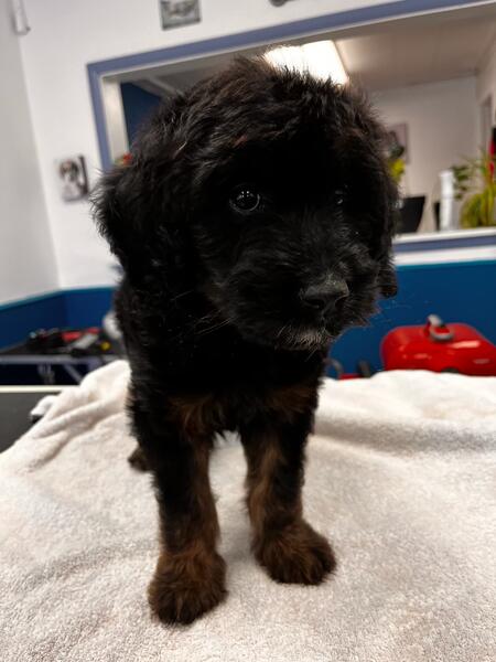 message thehippiedoxie about this ad Male goldendoodle 10 weeks old. He's black with phantom markings. His parents are my pets. He has become potty training. He was born and raised in my home around children and other pets. Has had first vet check, dewormer and first shots. Located in Anderson Indiana. |