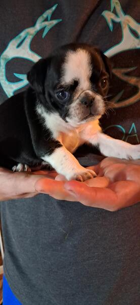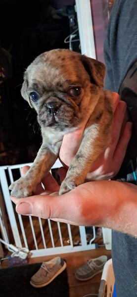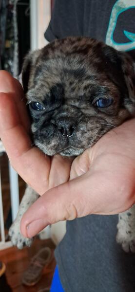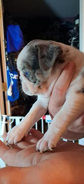 message gayle30 about this ad "I'm ready for my close-up Mr. DeMille" Barney (choc merle male) Pebbles (Koi female) Betty (Panda female) THE Fred (Koi male whiter face) Bam-Bam (choc merle male darker face) Their eyes just keep changing. Fred's might be BOTH BLUE The rest have 1 of each Betty's are both brown I don't even know anymore BUT JUST TAKE A GANDER AT THESE 5 BEAUTIES I really can't even venture to guess who the cutest is They look big in these pics, but they are TINY See last few pics for size reference! 5 weeks today! Mom & Dad both small adults MESSAGE FOR INFO! IN KY, BUT WILL |