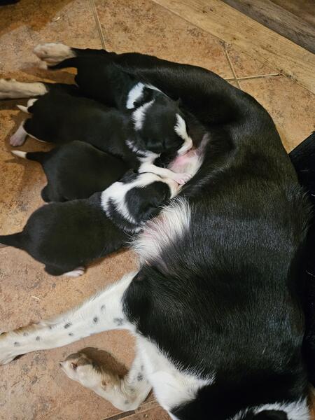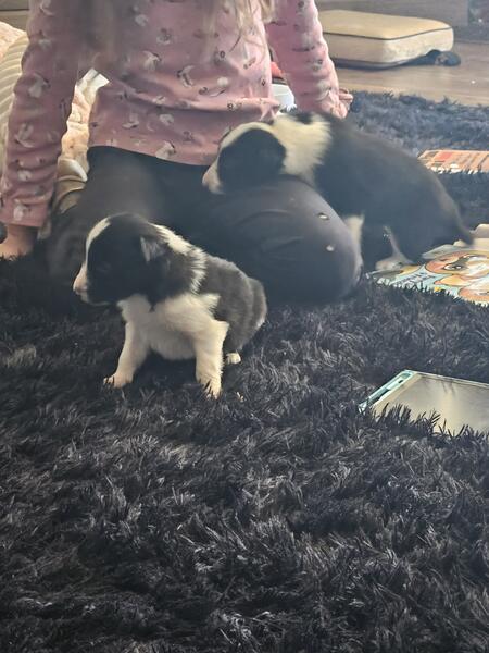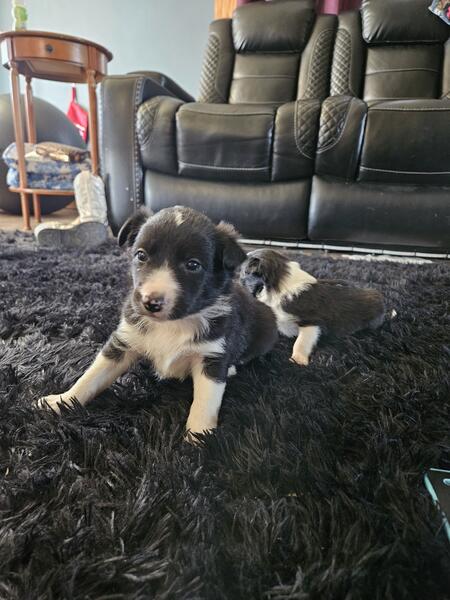 message tmfrm2714 about this ad Black and white McNabb x old line Border Collie puppies. Dad is old line breeding and is larger. Mother is McNabb collie so the smaller size. Both parents help on the farm. Dad came into it later in life but picked up on tricks fast. Mom strictly works cows. Pup's are strong and healthy! Born 10/18/25 will be ready Dec. 5 will come with first two sets of puppy shots. 4 boys and 3 girls left. |