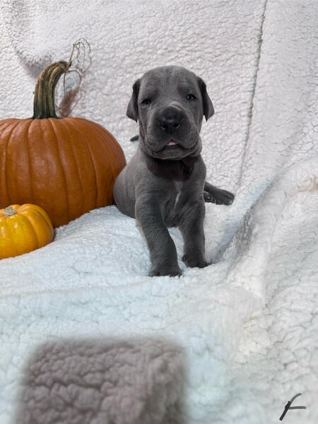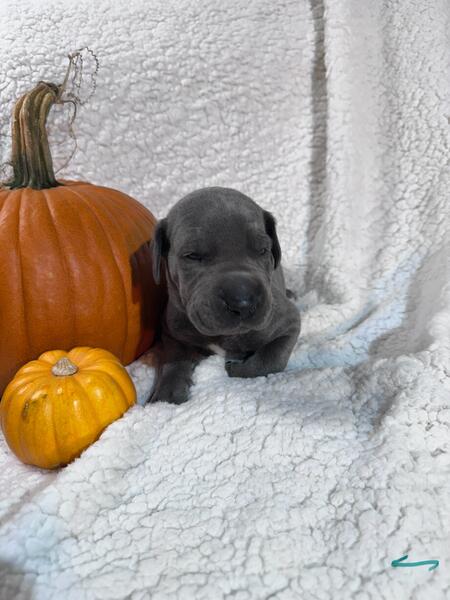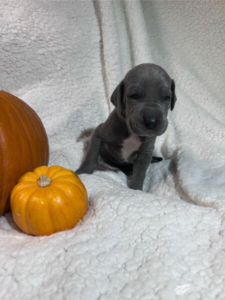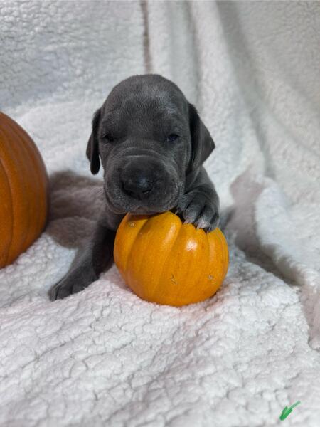 message trbns395 about this ad We have a litter of Dane pups born 10/12/25, ready to go home after vet check and shots around 12/15. Mom is Fawn w/black mask, Dad is blue, we have both parents onsite. We have 5 blue males, one blue female and one black female. Please message for availability. Located in Canton, Ohio. |