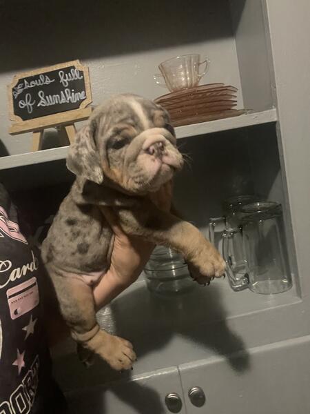 message exoticbulldogz about this ad English bulldog puppy available Blue tri Merle 14 weeks old Pet home only Born with a detached tail no issues with the puppy other than no movement in the tail. Only cosmetic! Puppy runs, plays and has no other issues will come with all shot records, akc registration and health certificate from the vet. Litter mates all sold for 5k. Significantly dropping price because of the cosmetic defect. Reigning fee is firm. 1500 |
