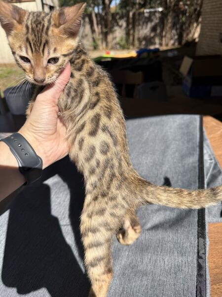 message johnsonventures567 about this ad Tica registered Bengal kittens. Will come with shots and vet checks before going home. Will be 12 weeks December 9. |