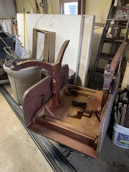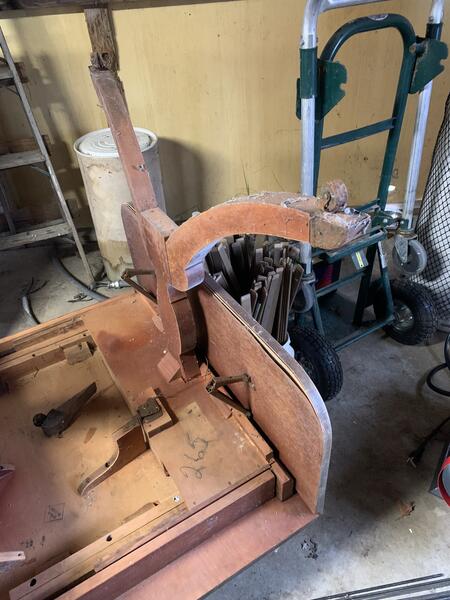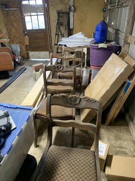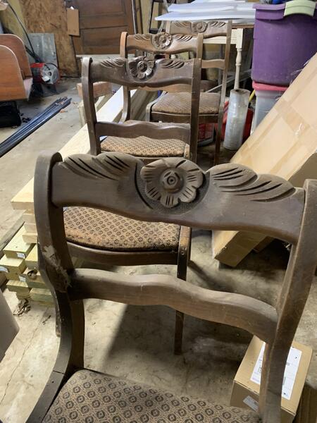 message clctbs5575 about this ad A genuine Duncan Phyfe folding table and 4 chairs. Table is in dire need of help, but a restoration Expert should find it an enjoyable challenge. Table has the "hidden" release box below (just right for a pistol and mechanism still works. Chairs are in much better shape, (i.e. original fabric seats, nothing missing, no splits/cracks etc All chairs are completely solid enough to sit on. People who had this let it just sit not good, but a great find for a restoration Expert. You MUST pick up at my location, and price is subject to inspection by buyer. |