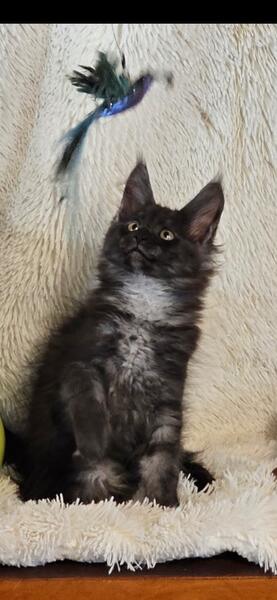 message skkc about this ad We have a beautiful litter of Maine Coon kittens looking for their forever homes! Breed: Purebred Maine Coon Age: 9 weeks Gender: Little Girls Parents on site gentle temperaments & large size Litter-trained & socialized with children and other pets Will come with first vaccinations & deworming Maine Coons are known for their gentle, dog-like personalities, intelligence, and majestic size. These kittens have been raised in home with lots of love and care. These little girls love to play and cuddle. TICA registered, raised inside and litter box trained, very well socialized, vet checked and vaccinated and limited health guarantee. |