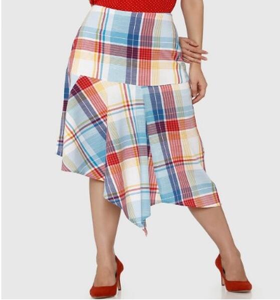 message pritee about this ad Product Code: 8402277 Blue and red checked A-Line midi skirt, has asymmetric hem, zip closure The model (height 5'8 is wearing a size 28 Look stylish and pretty with this skirt by Vero Moda. Team it with a pair of heels and crop top for a gorgeous look. 50% viscose, 50% cotton Machine-wash httpsmyntr.it/OfoigJM |