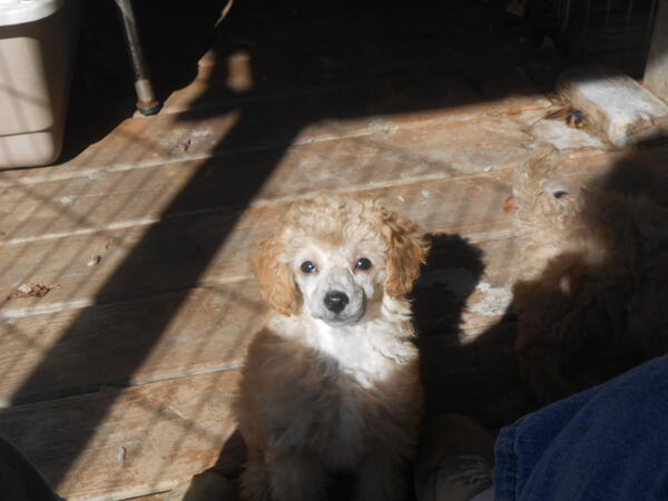 message spainrain about this ad Bonnie is a small mini poodle female-she has tail docked and dew claws removed-she will be ready to go October 18- vet checked and has first two vaccination-she will be dewormed 4 times before leaving-mom is an AKC 10 pound red mini poodle-dad is white 8 pounds CKC mini poodle-gentle loving homes only please-no aggressive cats dogs or children-no texting-no delivery-she will need additional vaccinations at 12 weeks of age-she will need grooming all her life-I suggest a crate for her nap time and safety when you have visitors or busy time |