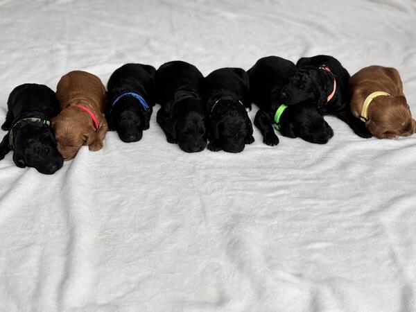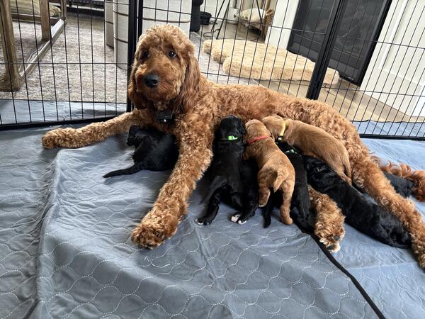 message greenprairiedoodles about this ad Beautiful F1b Irish Doodles born 7/11. 6 males and 2 females. Black/white and red/white Mother is an Irish Doodle, father is a standard poodle |