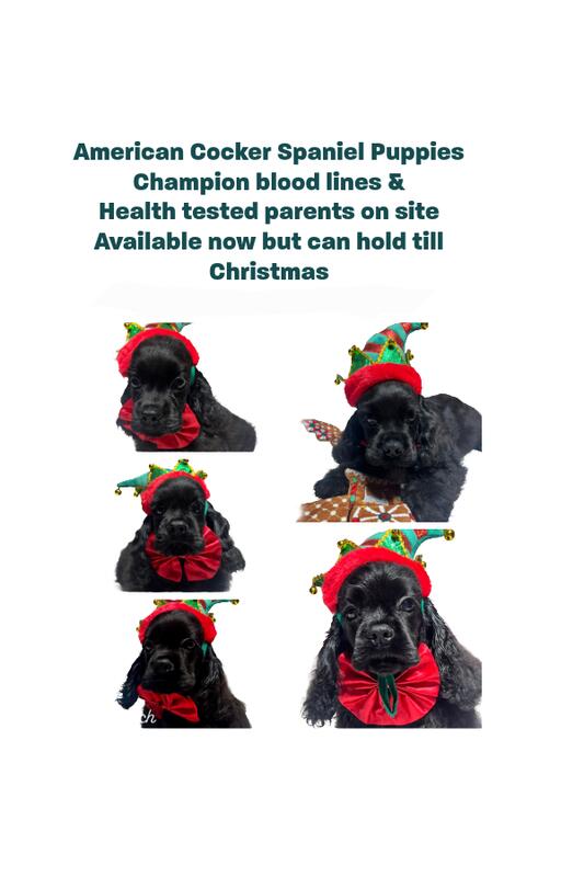 message kayann30 about this ad Beautiful PUREBRED American Cocker Spaniel puppies available and ready for their forever homes! These babies come from champion bloodlines, and BOTH parents are health tested and on-site. They have wonderful temperamentssweet, playful, and perfect for families. Puppy Details: Purebred American Cocker Spaniels Champion bloodlines Health-tested parents Gorgeous coats and long ears Raised indoors with lots of love Well-socialized, healthy, and happy Available now or can be held for Christmas! Ideal Homes These puppies are perfect for families, couples, or responsible individuals looking for a loyal companion. Cocker Spaniels are known for their affectionate personalities and make amazing family dogs. Location: Riverside County, CA (Local pickup preferred) Contact: Caroll Karr Call/Text: 951-310-3090 Serious inquiries only, please. These puppies come from quality lines and will not last long. |