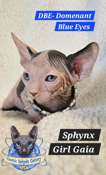 message cosmicsphynx about this ad We have kittens available, they are on our website and up to date. We are located in Chicago Area of Illinois, dedicated to breeding beautiful, healthy, energetic and affectionate Sphynx and ELF kittens. Our breeding cats are offspring of grand champions, imported from Europe, fully health and DNA tested, cleared for genetic defects, FeLV/FIV negative. Our kittens come with the adoption contract, lifetime genetic health guarantee, medical insurance, registration paper, FVRCP vaccinations, deworming, litter box training, no scratch training, well socialization and exceptional personality. Our kittens are born and raised at home, staying with us all the time. So they love humans so much, interactive, outgoing, clingy and cuddly. They come to you with the sweetest personality. They will bring joy to your life for years! Email me for a copy of the contract & pet insurance paperwork. Ready around 12 weeks old, Vet checked ,Pet Price - $2000-3000 or TICA registered with breeding rights - $ $2500-3500 .For a wider selection of kittens, please visit our website! Please visit our Facebook page for more photos and videos. Text me (815)616-4282 Meet Gaia Black & White Bi-Color Sphynx Our precious girl Gaia is a truly special kitten with an unforgettable look and personality. Her soft pink skin is beautifully contrasted with bold black patches across her back, tail, and ears, making her a rare beauty. Gaia is TICA registered (The International Cat Association, USA) with full rights. She may be shown in her class as a purebred Sphynx, and she meets the highest standards for type and body structure. She is a premium-quality, show-class kitten, bred to represent the very best of her breed. What makes Gaia even more extraordinary are her unique DBE eyes (Dominant Blue & Odd Eyes Program giving her an enchanting and unforgettable expression. She is not just a companion, but a true jewel for anyone who values excellence in Sphynx cats. A kitten of elegance, rarity, and show-stopping presence. Available in Chicago, Illinois nationwide delivery can be arranged. message cosmicsphynx about this ad |