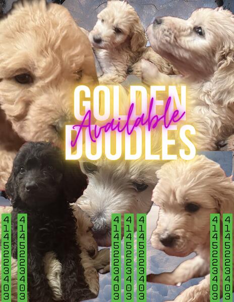 message truessence about this ad Beautiful GoldenDoodles full of life ready for new forever homes Currently have first shots and deworming. Holiday pricing going on now! Amazing GoldenDoodles available just in time for the Holidays! Very alert and playful,loving and full of life. A great addition for your Family 9weeks old already have first set of shots and first round of deworming. Message me for details Thank You Location:Milwaukee Wisconsin Also: I DO NOT ACCEPT DEPOSITS OR ONLINE PAYMENTS |