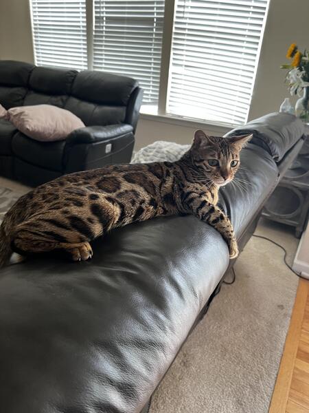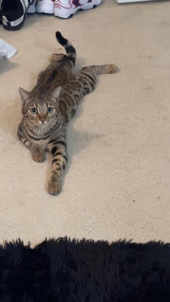 message vane about this ad Three year old Bengal cat. Looking for a fur-ever home. Re-homing fee of $250, includes litter box, cat food and water fountain. |