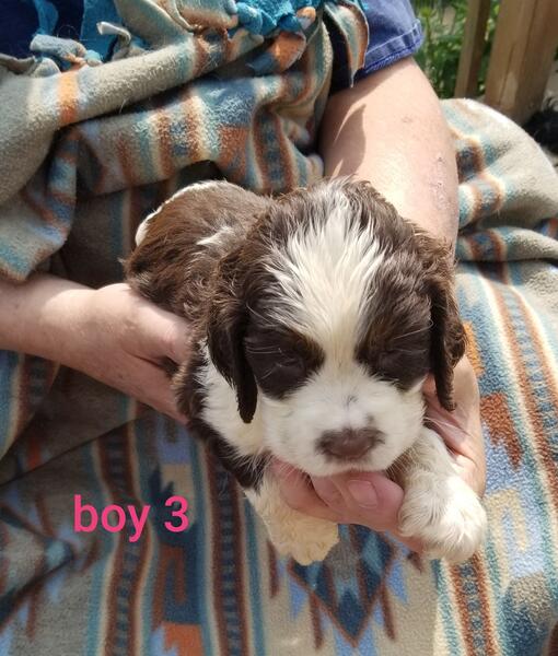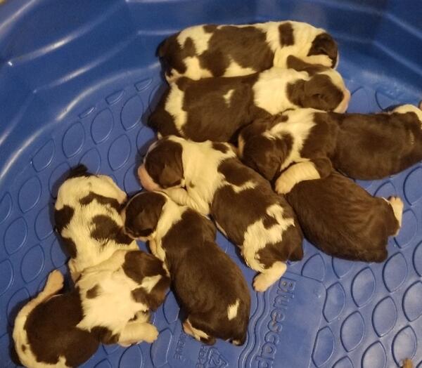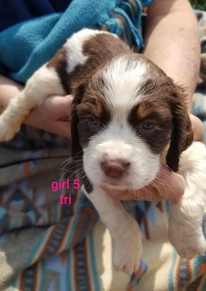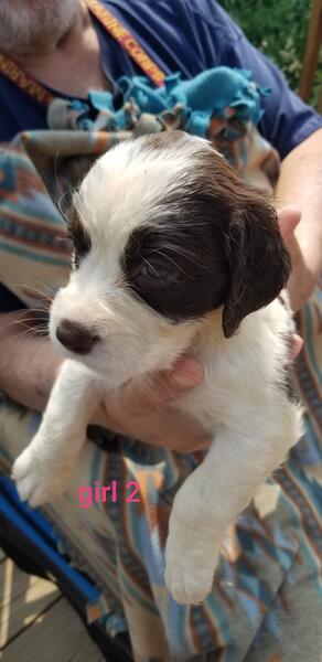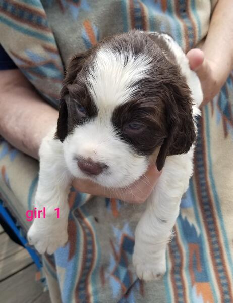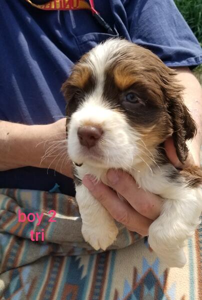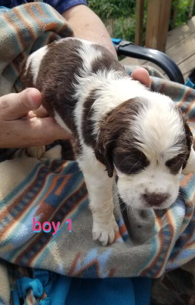 message hall48880 about this ad Sweet, field bred, Springer pups born May 8. Mother lv/wh, father is lv/wh tri. 6 pups, 4 females, 2 males. All liver and white or lv/wh tri These pups are being sold without Akc registration, but are full bred, tails docked, dew claws removed, dewormed , and first shots Text 989 560 0306. |