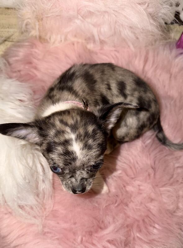 message jvblh5244 about this ad This listing is for a very beautiful black Merle smooth coat female She has 1 blue eye and 1 brown eye Shes a very fun loving baby, pictures dont do her justice She is charting 5 pounds Import lines Pet only I can provide pics of grandparents and great grandparents more info below Hi Im a small in home breeder of quality applehead chihuahuas, I pride myself on only offering well breed chihuahuas to loving pet homes, Ive been raising chihuahuas for 22 years, all my dogs reside in my home as part of the family, puppies are pickup only, You must pick your puppy up in person. I have a gorgeous litter available to pet homes, ready now, I will not hold a puppy past a day for pickup They are all beautiful with nice appleheads They are super sweet playful and loving pups They love toys and playing And are ready for their new homes Please read my entire ad as all information and pictures are posted and current Please be considerate and only reply if your ready to commit I want the best homes for my puppies Please discuss it with anyone else involved before you contact me, serious inquiries only please thank you for understanding They are import lined Sire is a Ukrainian import blue and white long coat Dam is a beautiful black Merle smooth coat Puppies come vaccinated and dewormed, started on potty pads and basic training such as recall/ crate training, I use puppy culture techniques and start the puppies on a grooming routine as well, Puppies go home with a goodie bag of food, treats, dental bones, potty pads blanket and a year genetic health guarantee Puppies are sold as pet only 2500 cash only due at pickup If serious call or text 859-429-4598 text is best for a faster reply as I do work message jvblh5244 about this ad |