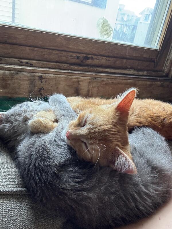 Two male kittens . One orange one grey Dewormed flea treated. Born Jan 9th 2025