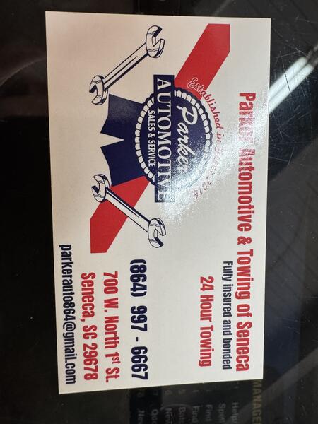 message parkerautomotive about this ad Parker Automotive is a fast- growing, family- owned business. We are new to the beautiful city of Seneca SC. We offer FREE AC and break inspections. 39.99 oil changes on conventional motors. We also offer towing services. Call and book an appointment today! |