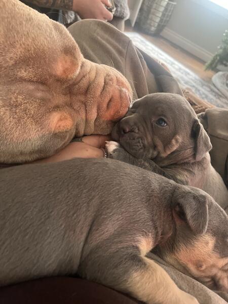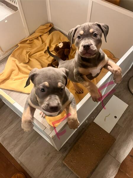 message jshrd3214 about this ad Top of the line pedigrees! ABKC registered Blue lilac Tri XL American bullies Ive got two beautiful females (twins) And one stunning male ! , Mom is imported from Vegas her pedigree is SCB SincityBullies weighing in at 120 lbs Dad is from Alberta XL bullies weighing in at 160lbs Pups have their second set of shots , dewormer and are microchipped. Pups are raised in home with all the love they can handle! Around 2 small children with mom and dad even a cat! So they would fit into anyones home They are 99% potty trained and already ask to go out ! As well as basic commands like sit ! These pups are 12 weeks of age and ready to go to their forever homes ! Mom and dad have amazing calm temperaments they are more couch potatoes then agility dogs ! Txt me for inquires 780-862-0142 |