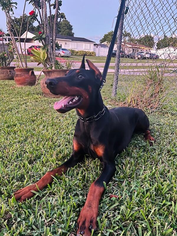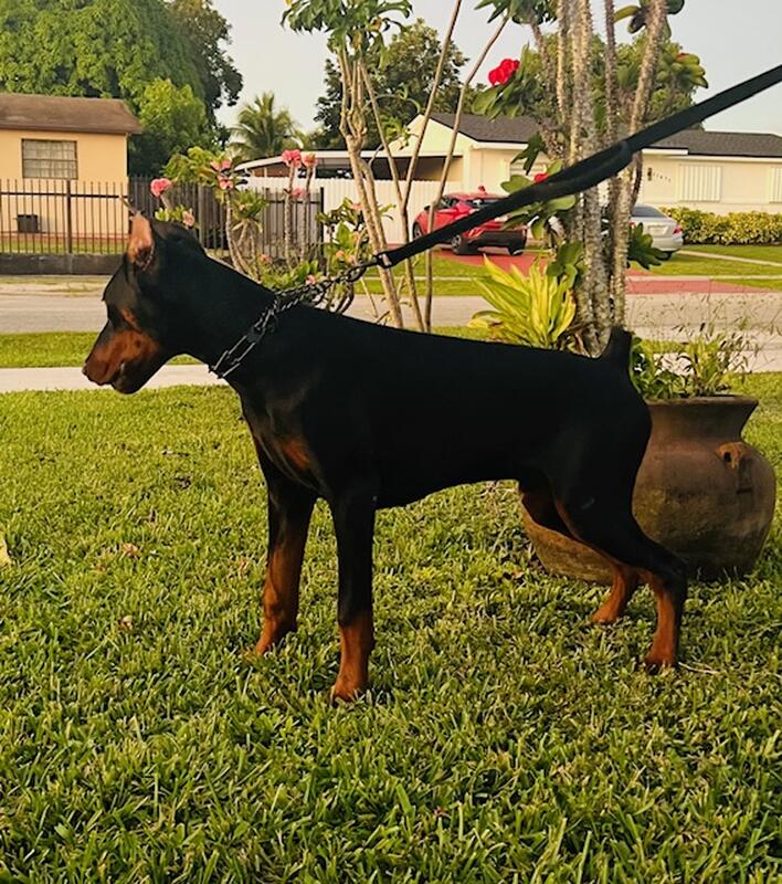 message leonel about this ad 6.5 Month old , he is ready to go new family , Pups ears are cropped, tail docked, semi potty trained, semi obedience trained, Can leave with full or limited AKC, good looking boy . 786-448-7987 |