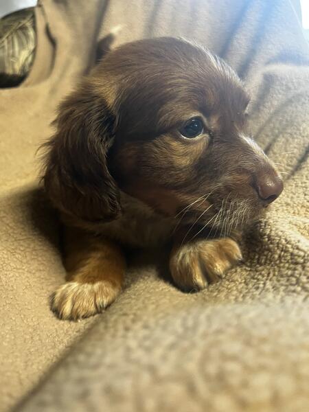 "Bam Bam" Chocolate Long Coated Mini Male -- 1000.00