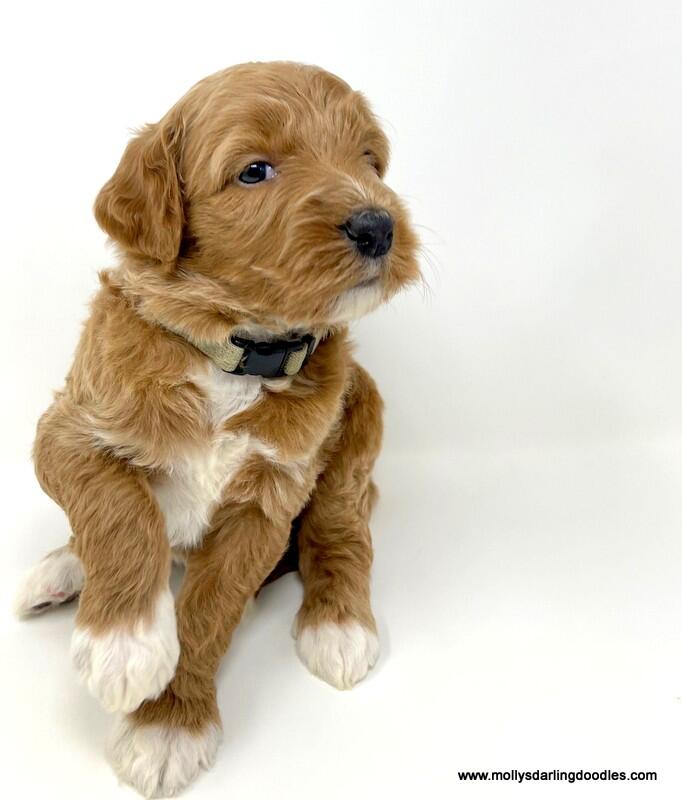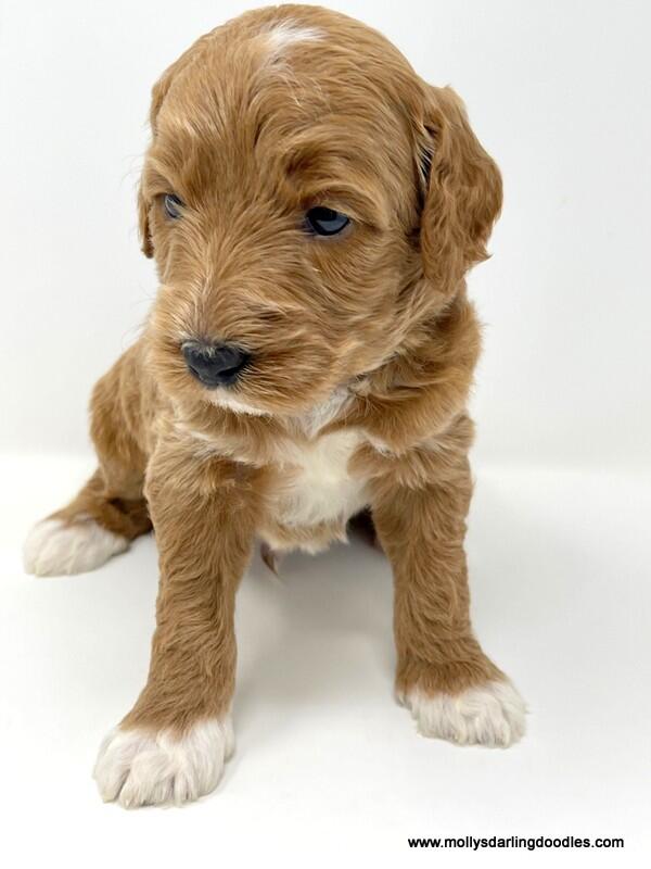 Beautiful apricot (with white markings) Bernedoodle boy. Expecting him to be around 50 lbs. when grown. He will be Vet checked, microchipped, have his first distemper/parvo vaccine and dewormed x 3 prior to going to his new home. He will be ready for his new home on Feb. 4th when he is 8 weeks old.