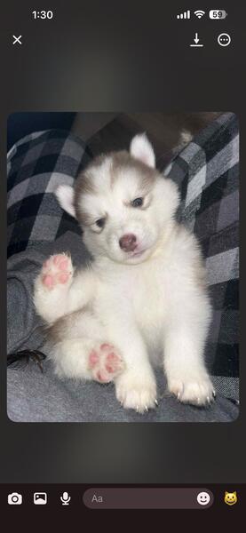 message blessedboymom2 about this ad Males & Females. Ready to go now. Raised inside. Great with kids and other dogs. First vaccine and dewormed since 2 weeks old. Eating hard puppy chow and using potty pads. Theyll be around 25-30 pounds grown. Mommy is 1/2 husky 1/2 Pomeranian, & daddy is fully husky. There is a rehome fee. Not free/cheap, but reasonable. Serious and ready to adopt inquires ONLY. Text me @ 470four67508nine. No trades. $650 obo! |