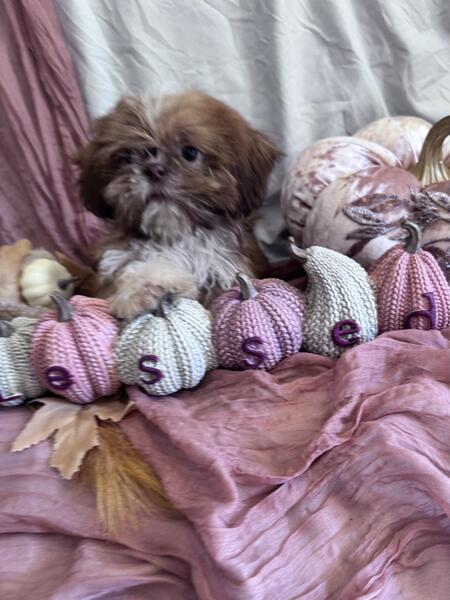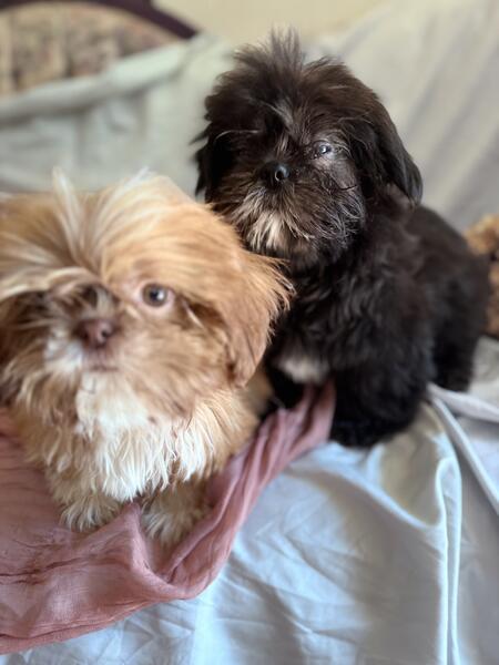 message myrajackson about this ad I have 2 little boys available. They are 12 weeks old and ready for their fur ever homes. They have had first shots and been dewormed. AKC registered. They are crate trained, and working on being housebroken. The little blue boy, (whose hair is raven black) is charting to be 9 to 10 pounds as an adult. The little liver boy, (whose hair is brown and white) is charting to be 7 to 9 pounds as an adult. Both are super playful and they are used to kids, as my granddaughter is their favorite playmate. For more information text or call seven four zero, nine four one, six three two seven. Or find Boswell shih tzu on Facebook. |