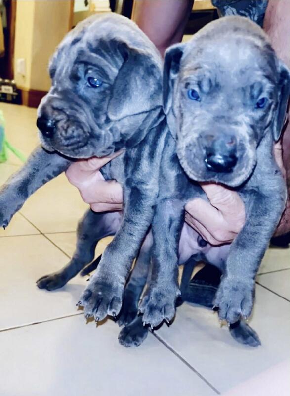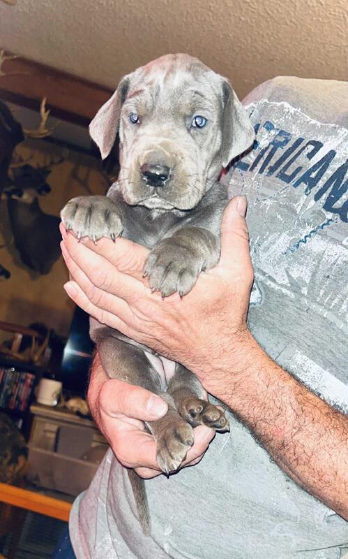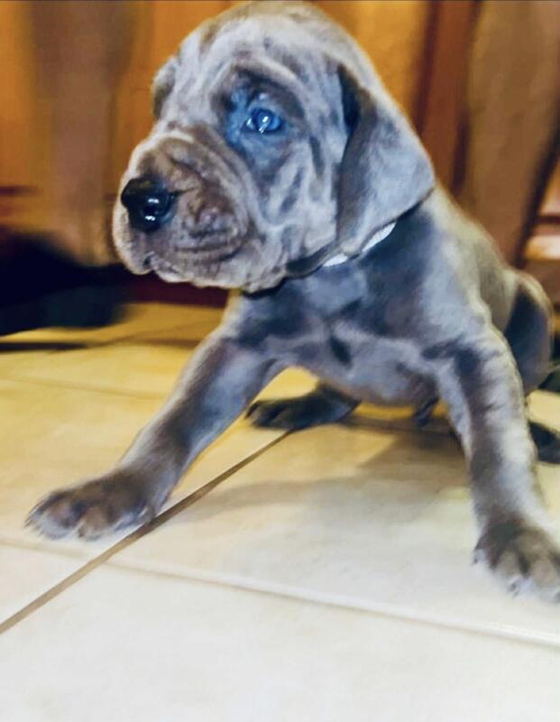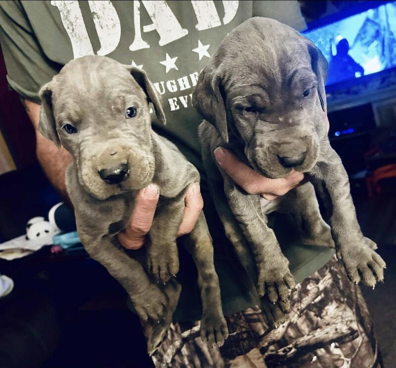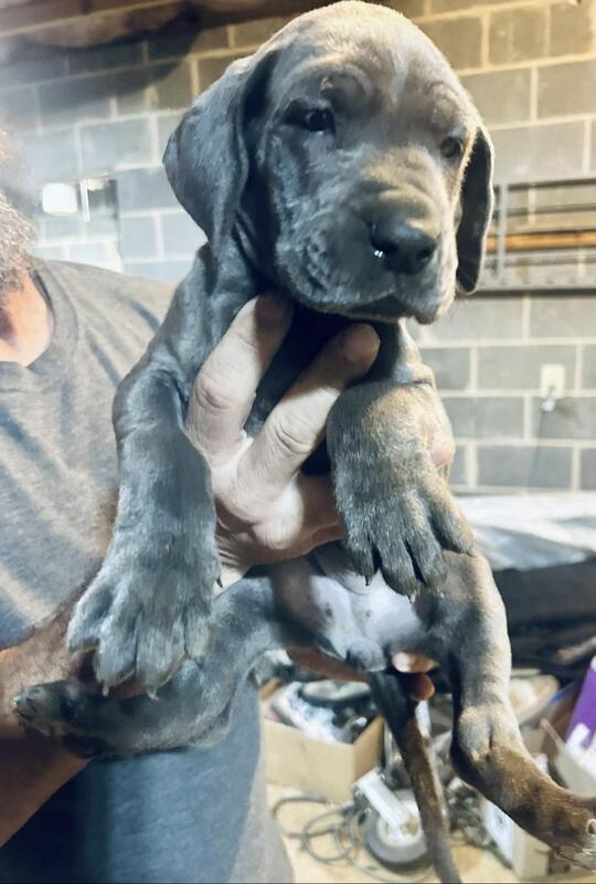 message bbranch761 about this ad We have 4 AKC registered great dane puppies. 2 boys and 2 girls some are solid blue and some have white spots on their chests. They will come with AKC papers, 6 week shots and vet checked. We have been breeding great danes since 2006 and have had the same bloodline on my males for 13 years. Dad is blue and mom is blue brindle and she carries tan point and chocolate. I offer limited registration for pet only homes and full registration is available for additional fee for breeding rights. The pictures are a week and a half old so they are bigger now but they are on the go now so super hard to take good pictures of them now. Email me or text me for more information they will range from 800 to 1200 the males and full registration will be the 1200 range. 800 and limited registration would be the 800. Located near Hickory, NC welcome to come see them they are eating can food already. Soon as they started getting teeth momma was done with them lol if you have experience with great dane puppies and want yours at 6 or would rather wait til 8 weeks. We prefer 8 weeks though. Born September 15th 2025 [email protected] 828-851-0062 message bbranch761 about this ad |