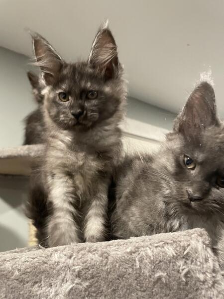 message mainecoonmom1 about this ad We have several Maine Coon Kittens, both males and females, ready to join your family now. They are eating dry kibble and wet food, litter box trained, up to date on vaccinations and TICA registered. Both parents of the kittens are exceptionally large examples of their breed. Polydactyls are slightly more. Please contact us with any questions. |