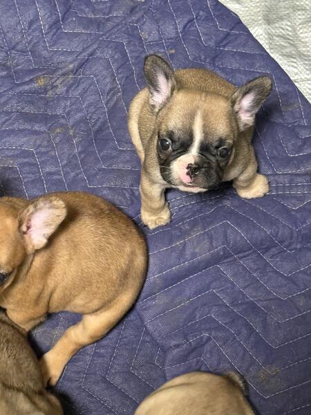 message bobbysfrenchies about this ad Frenchie pups Ready July 1st Pups wormed every two weeks and will be vaccinated at appropriate age. Pups will come with all vet paperwork and health certificate from their vet. We will not be registering this litter. Pups will go home with toys food ect in a goody bag 2 females the Merle girl with spotted face and the lightest is female the other three are males with the runt being a male pups will be 1500 with deposit to hold will travel to meet some. |