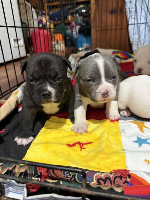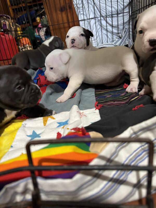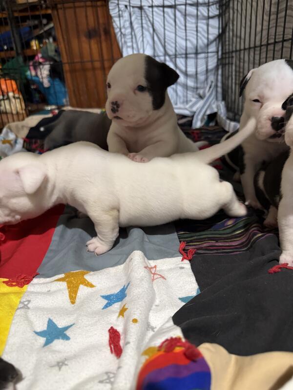 message sm123bullys about this ad I some ABKC registered bully pups that will be ready 3rd or 4th week of January they will be vet checked and utd on shots have been dewormed multiple times I have 3 males and 3 females available nice bloodlines they r $2000 each now taking deposits to hold ur pick the deposit will not be returned unless something happens to the puppy while in my care please contact for more information or if interested I will not tolerate scams serious inquiries only thanks 859-420-1569 |