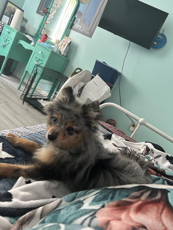 message prettynpit about this ad His name is Merle. He is super sweet. He is CKC registered. He is not neutered. He loves to be with his person. He is good with other dogs his size, not sure about big dogs. He loves our cat but can be a bit rough with play at times. He will come with his belongings. If interested please text 7575442762 |