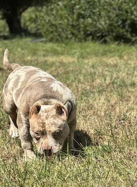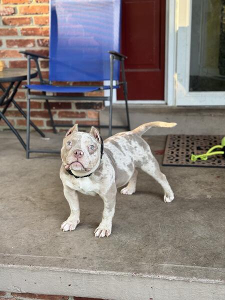 message camprobinson1 about this ad Opening up for stud soon is Squabble! Micro bully male (Merle) will be ready to put in some work, hes 10 months old and still growing. AMAZING structure on this boy with a great bloodline. Short, functional, clean, full tail, and a tri carrier. Stud fee $1000/ $250 lock-in or pup back (from ABKC/ ABR qualified females) Contact me at 301-710-3509 |