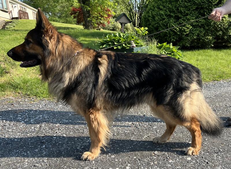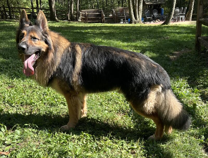 message vonmoyerhaus about this ad Max is a big beautiful male with a nice big head and bone. He is generically clear of all diseases. He Carries blue, liver and solid. Max produces beautiful pups with amazing temperaments. His pups can be potential service dogs as he is good with children and adults with disabilities. Max will only be for artificial insemination. Pick of litter depending on the females pedigree or if fee, half is due at first breeding and balance when pups are born. Located in lehighton Pa. Message for more information. Pedigree link |