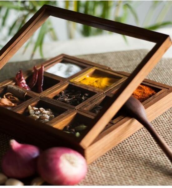 message rohinee about this ad Product Code: 1569673 Art type: Solid Suitable for: Storing Spices Features: Handcrafted, interlocking mechanism which prevents damp and condensation, also eliminates moisture This sheesham wooden box with 9 sections and a spoon is great to store Indian spices. It is handcrafted in classic brown color and comes with a unique sheesham spoon.This multipurpose utility box can also be used to store and serve refreshners, dry fruits and keep your knick knacks like jewellery, small items at one place. The natural brown colour of this multipurpose box enhances it's look and has 9 individually seperated compartments. The containers can be used seperately to store spices and other uses like for storing dry fruits, keep jewellery, serve refreshners and keep your Knick Knacks. It can be used to store raw spices as welland is easy to clean and maintain. This will definitely keep your spices organised in your kitchen. Disclaimer: Wood may have marks or patches which are natural Height: 5 cm Width: 20.3 cm Length: 20.3 cm httpsmyntr.it/PPZeAMA message rohinee about this ad |
