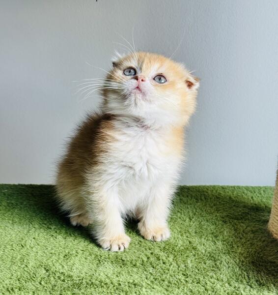 message glshtlv0kjp about this ad Friendly Scottish Fold golden shaded boy will be ready to go to his new home in about a month. Our kittens leave for their new families with all necessary vaccinations and deworming done. For more information, please send me a private message. |