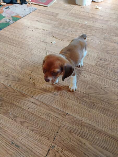 message ranwest38 about this ad 4 Males, 2 Tri-Colored, 1 chocolate and white, 1 red and white. Parents on premises. Almost 7 weeks old. Wormed twice since week 3. Will have shots. Free Microchips available to take to vet for its first checkup after 9 weeks. |