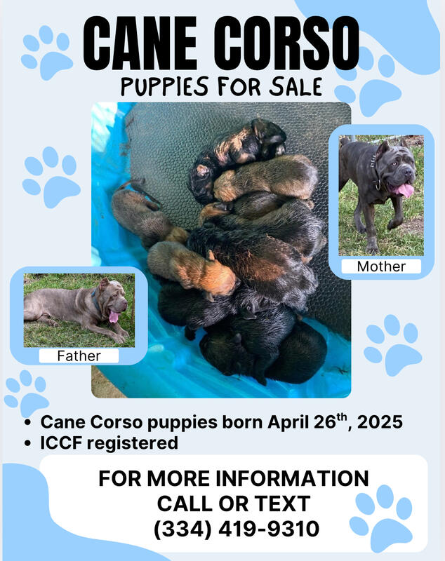 For more information call or text (334) 419-9310