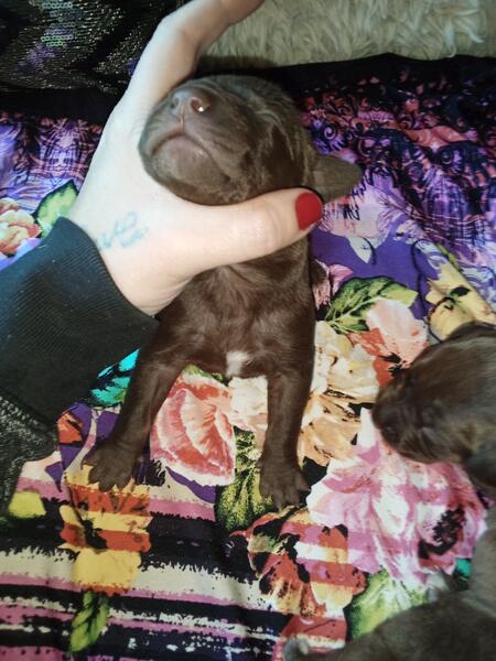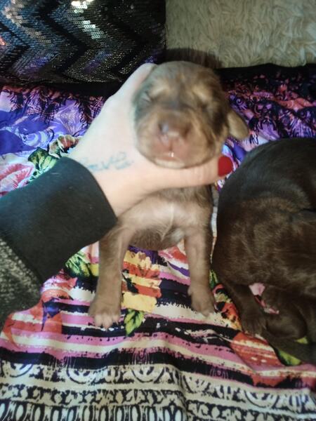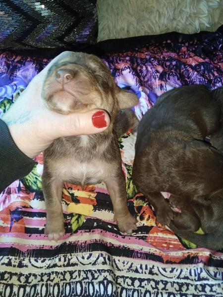 message xwife1 about this ad Fawn colored females and dark chocolate females also fawn boys and dark chocolate boys. Born 10/22/2025 Please only message if you are serious. There are 5 females and 3 males. Can go home in 6 weeks. Looking for a new home for them asap by 6 weeks of December 3rd. Due to me having to move. My phone number to contact is 269-394-0162 My name is Erica |